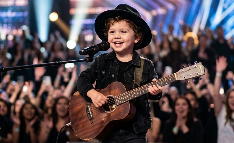 They stretched across the floor, reaching toward a space where a small figure now stood, barely tall enough for the microphone placed in front of him. The audience watched with polite curiosity, the kind reserved for moments that feel more sweet than serious.