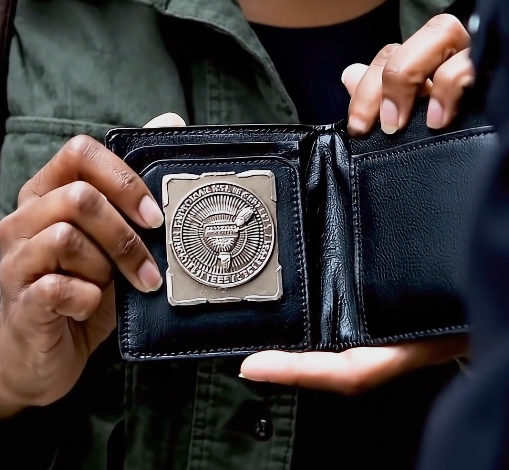 Until she pulled out a small identification case and opened it in front of him.
