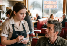 The bell above the diner door rang the same way it always did, bright and cheerful, almost out of place against the heaviness of the day I was having. Lunch rush had already taken over Riverside Diner, filling the space with the smell of grilled onions, fresh coffee, and warm bread. Plates clattered, conversations overlapped, and orders were shouted across the kitchen like a well practiced routine.