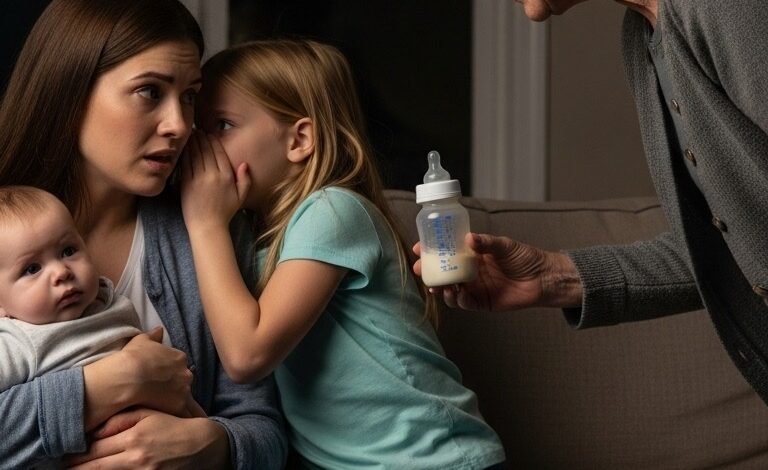 Then Lily tugged on my sleeve. “Mom,” she whispered, “can I show you something?” We stepped into the hallway. She opened her tablet and pulled up photos she’d taken earlier — a pink medicine cup, the baby bottle, amber liquid dripping into the Tylenol cap. “Grandma said it would help more if she added her syrup,” Lily said. “I didn’t want to lie, so I took pictures. Was that right?”