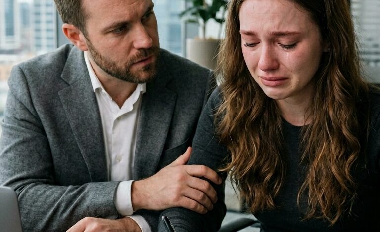 It struck the tall windows of the lawyer’s office in relentless waves, blurring the world into shades of gray. Inside, the silence was heavier than the storm, pressing down on every breath Sophia Bennett tried to take.