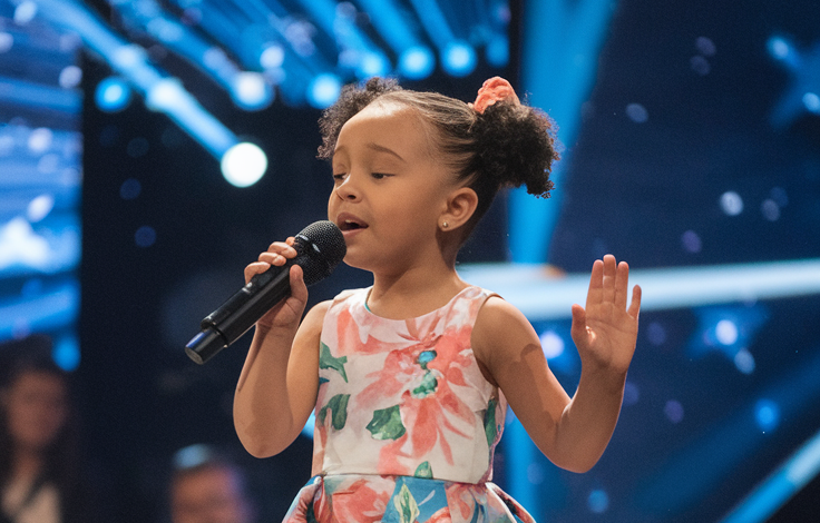 The room felt heavy the moment her name was called. It wasn’t just another audition—it was one of those moments where everyone quietly held their breath, already judging before a single note was sung. The stage lights glowed softly against her face as she walked forward, small in frame but carrying something unexplainably powerful in her presence.
