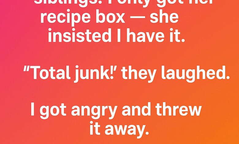 That night, as I cleared the table, I glanced at the box again. I felt foolish for letting it bother me. It was just a recipe box — not worth anything, not even sentimental enough to display. I set it beside the trash bin, thinking I’d deal with it in the morning.