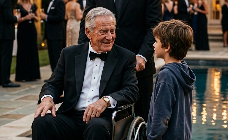 Standing at the edge of a space filled with people who didn’t see him as anything more than a distraction. His clothes were simple, worn, and his presence didn’t match the polished world around him.